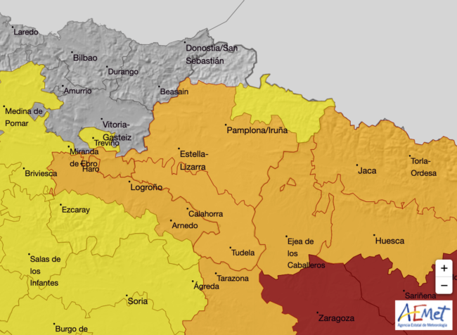 Se establece Alerta NARANJA o de riesgo MEDIO para Navarra con especial atención a  la zona de la RIBERA DEL EBRO donde las temperaturas podrán ser superiores a 40ºC.