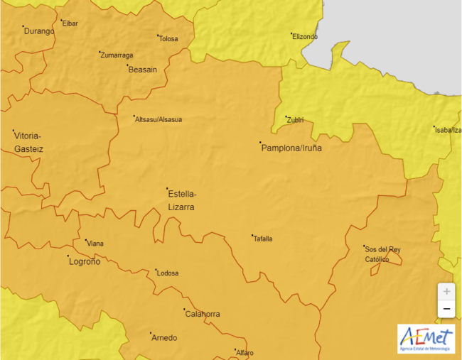Se establece Alerta NARANJA o de riesgo MEDIO para Navarra con especial atención a  la zona de la RIBERA DEL EBRO