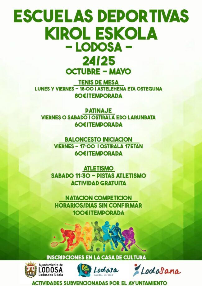 Las actividades de este año son: TENIS DE MESA, PATINAJE, BALONCESTO INICIACION, ATLETISMO y NATACION COMPETICION