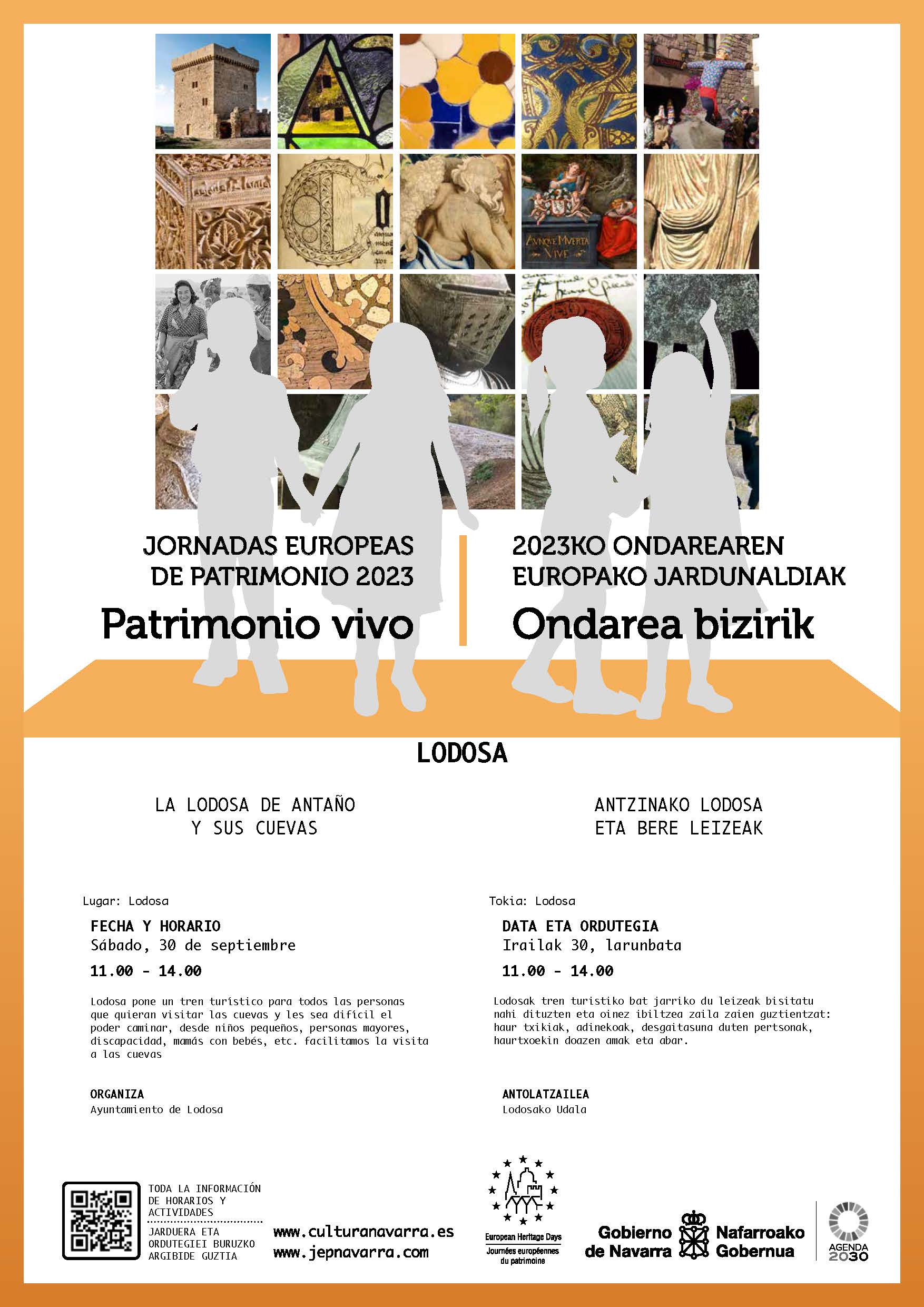Este día Lodosa representa sus orígenes, la esencia de la localidad, como se vivía en las casas cuevas sin agua, sin luz, labores de la casa, trabajos del campo, ensartir pimientos, asado en carbón, pelado de pimientos y por supuesto degustación de los mismos al terminar. Podemos meternos de lleno en una época en la cual se vivía en la calle junto a tus vecinos y familiares, una vida sana, correr y cantar esa era su manera de pasar el día, mientras las mujeres cosían, vareaban la lana de los colchones, los hombres colgaban los pimientos del cuerno para secar y comer todo el año y hacer esas sopas de ajo tan típicas y nuestro plato navarro como el cordero al chilindrón, o echaban la partidilla a la brisca con los vecinos,…Con estas jornadas se ha recuperado desde cancioneros antiguos, casi perdidos por completo pero que la familia Romero se ha propuesto en recuperar, podemos escucharlos, ver como se trabajaba tanto hombres como mujeres en la casa, como pasaban el rato los más pequeños y disfrutar de un día de hace 150 años. Es una experiencia preciosa para contemplar la viviendas por dentro y por fuera, y la vida que resurge de nuevo a su alrededor. Gracias a este tipo de Jornadas del Patrimonio, los más pequeños y jóvenes tanto visitantes como locales conocen nuestras tradiciones, orígenes y forma de vida de nuestra localidad, Lodosa.