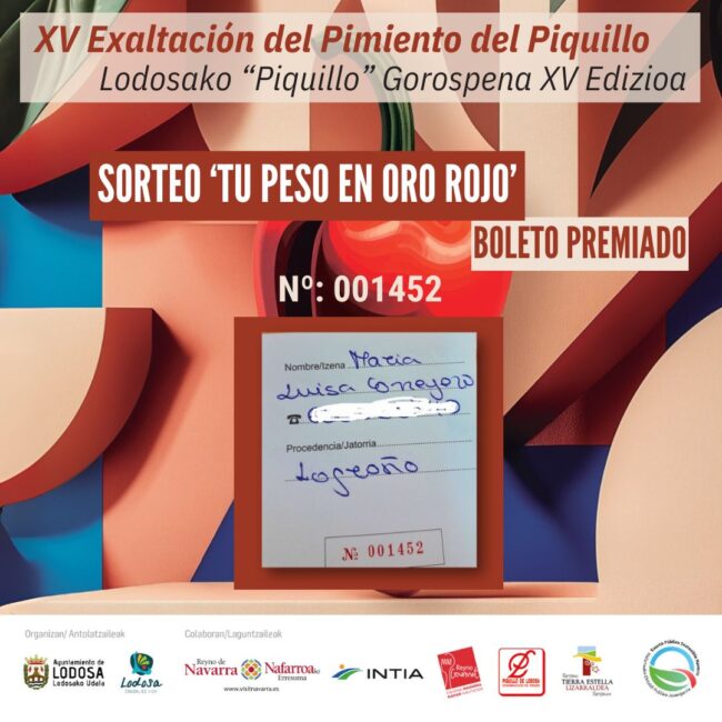 GANADORA SORTEO TU PESO EN PIMIENTOS del Piquillo de Lodosa